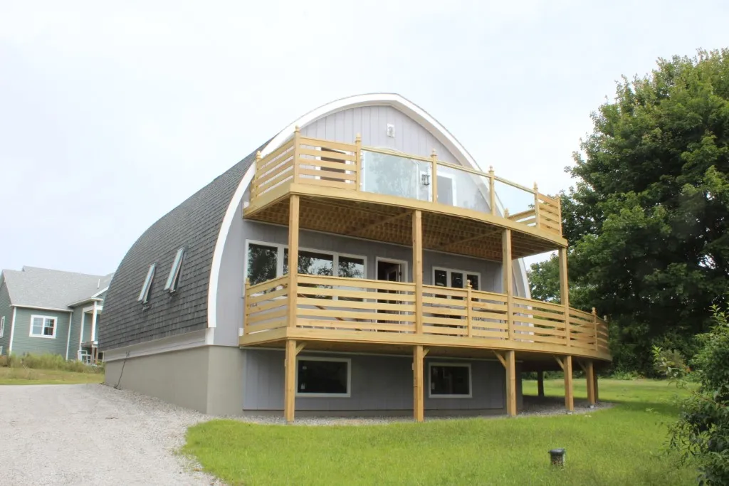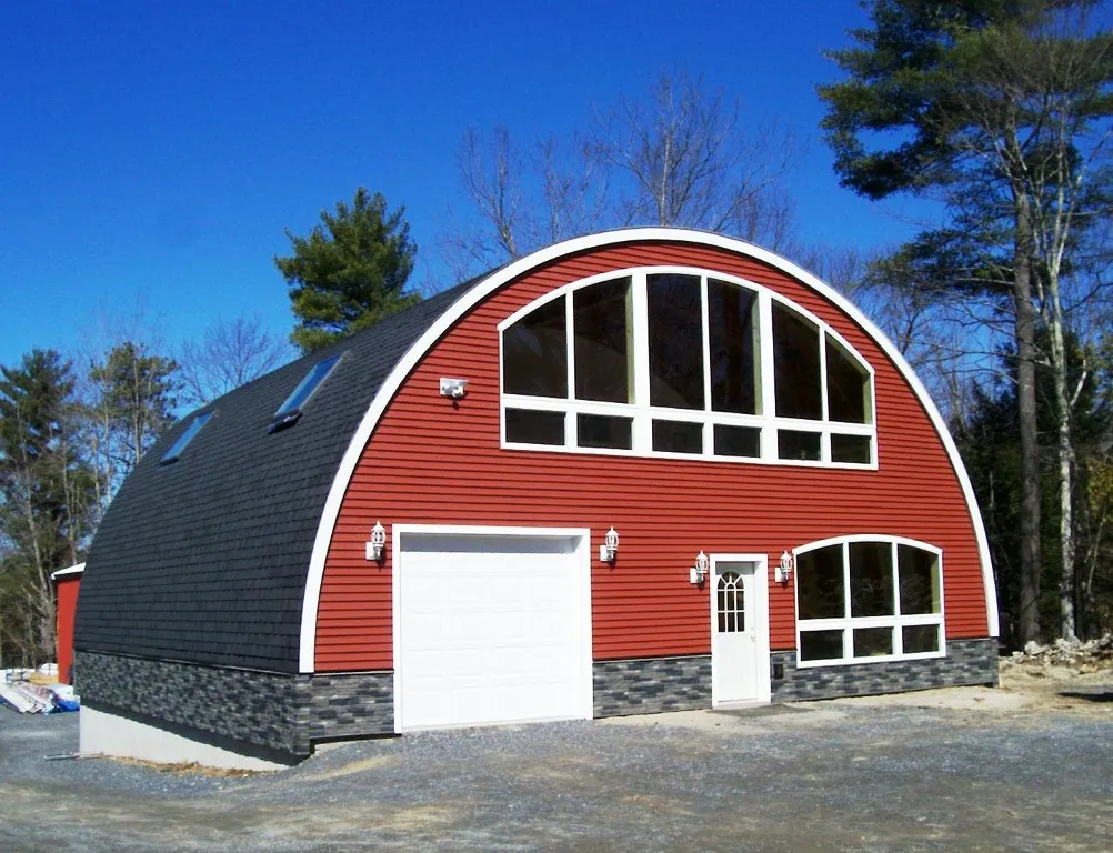 This series of photos illustrate a variety of Quonset and Gothic profile structures ranging from basic buildings to some with additional interior space created using bump out, dormer and daylight basement extensions.